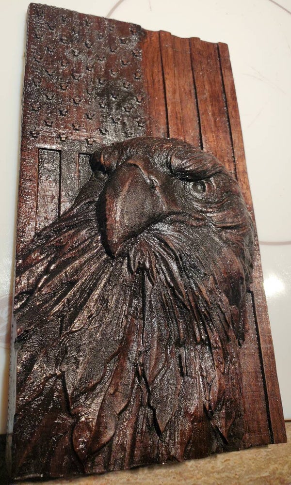 3D American Eagle made from Walnut Wood, stained in Red Mahogony. (7X4)